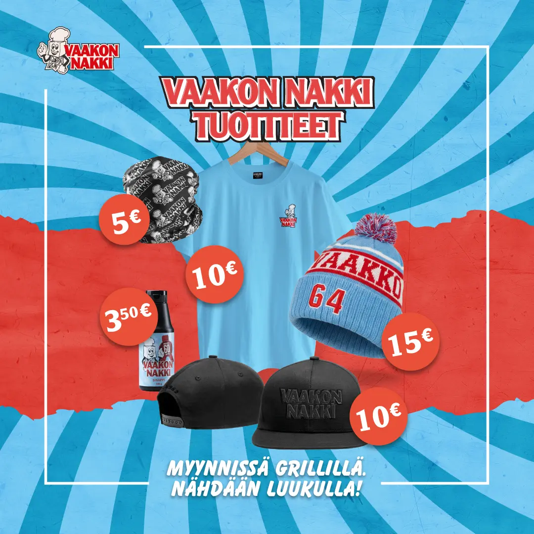 Vaakon Nakki rekrytoi! Luvassa on työntäyteinen kesä legendaarisessa työympäristössä, hyvä palkka ja rento työilmapiiri. Työhön opetetaan, joten kokemusta tärkeämpää on asenne ja reipas ote. Vaakon Nakki on suosittu grilli ympäri vuoden, joten töitä löytyy myös vakituisesti halukkaille. Ota yhteyttä: posti@vaakonnakki.fi